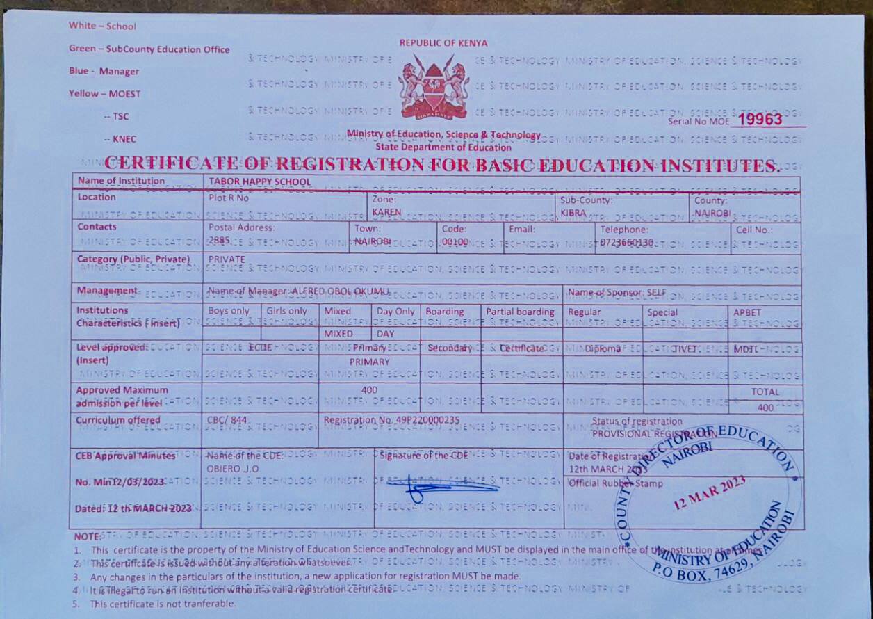 Есть полная уверенность, что все получится. Мы, кажется, рассказывали, что в ноябре прошлого года нам пришел отказ от Министерства образования Кении зарегистрировать нашу школу с первоначальным именем Tabor School, потому что в общем реестре учебных заведений страны это название имеет повторы. Чиновники предложили нам добавить к названию happy. Получилось Tabor Happy School — «Счастливая школа Фавор». И вот оно: как лодку назовешь, как она и поплывет! Полугода не прошло, как все поменялось не только в стенах школы, но и сами стены! Стало веселее, светлее — счастливее! Мысли и слова материальны.